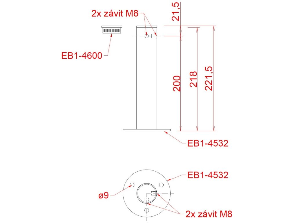 Příruba (rohová) na fasádní lankovou stěnu, odsazení 200mm, se dvěma vnitřními závity M8, broušená nerez K320 / AISI 304