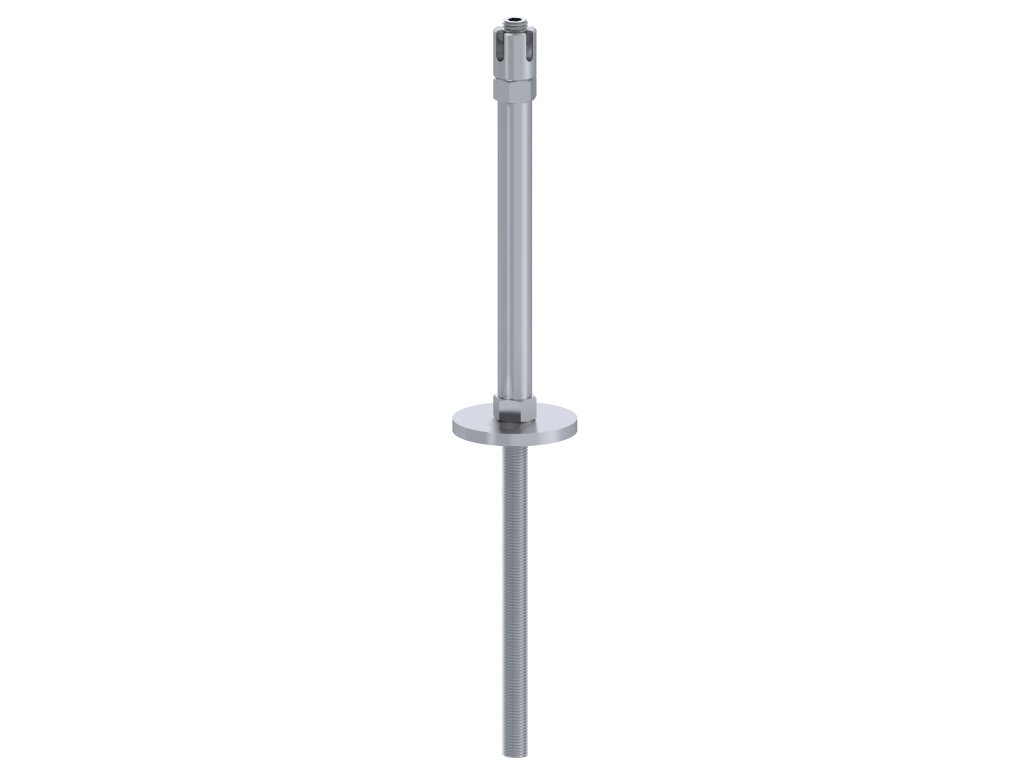 Príruba (stredová) na fasádnu lankovú stenu, odsadenie 200mm, s dvomi otvormi na lanko ø 5mm, nerez AISI 304