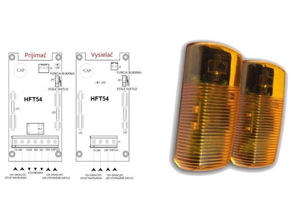 Fotobuňky s integrovaným majákem, 12-24 VAC/DC rozměr fotobuňky: 127x50x35mm, cena za PÁR