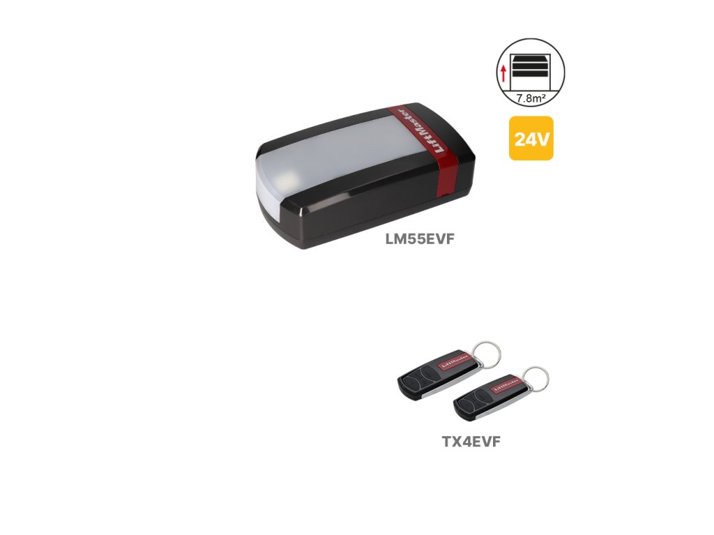 LiftMaster LM55EVF je kompaktní a spolehlivý 24 V pohon určený pro garážová sekční vrata o hmotnosti do 90 kg, se šířkou do 3,5 m a výškou do 2,25 m. Díky modernímu designu, integrovanému LED osvětlení a podpoře technologie myQ nabízí pohodlné a inteligentní ovládání vrat pomocí smartphonu, tabletu nebo počítače.