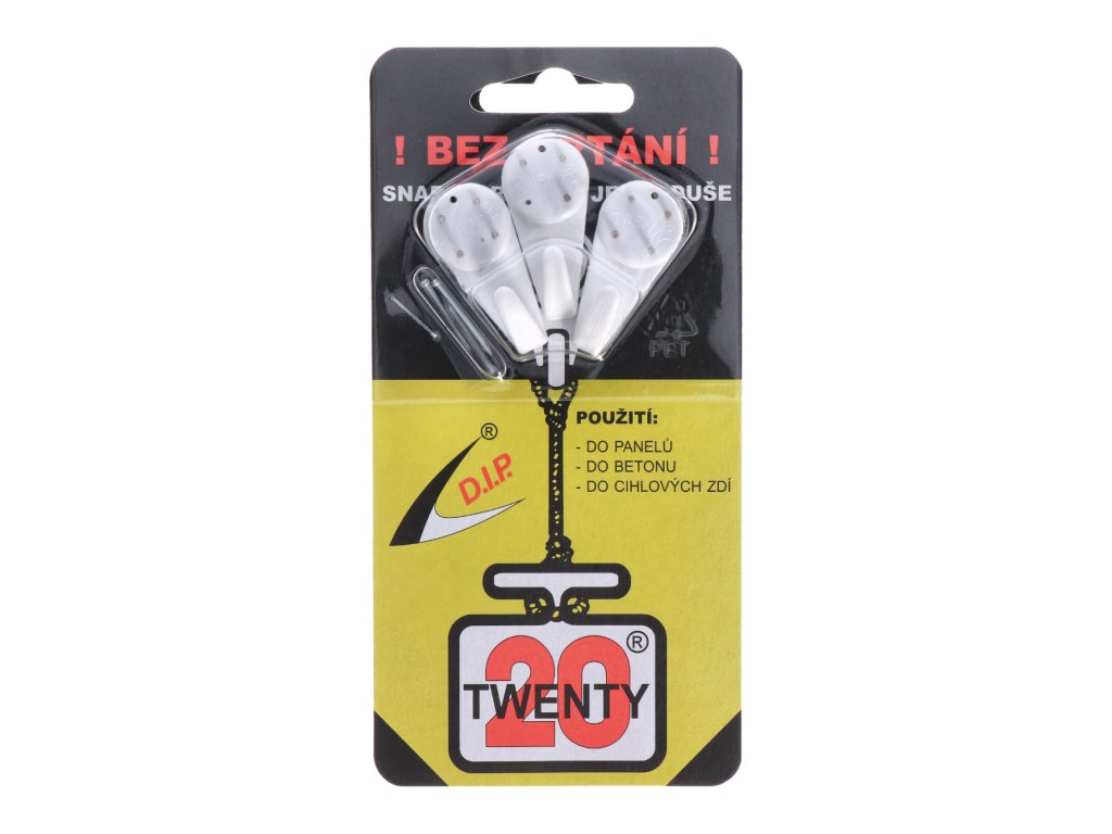 Háček twenty maxi, polyamid, 3 ks v balení, 4 hroty, pro větší předměty