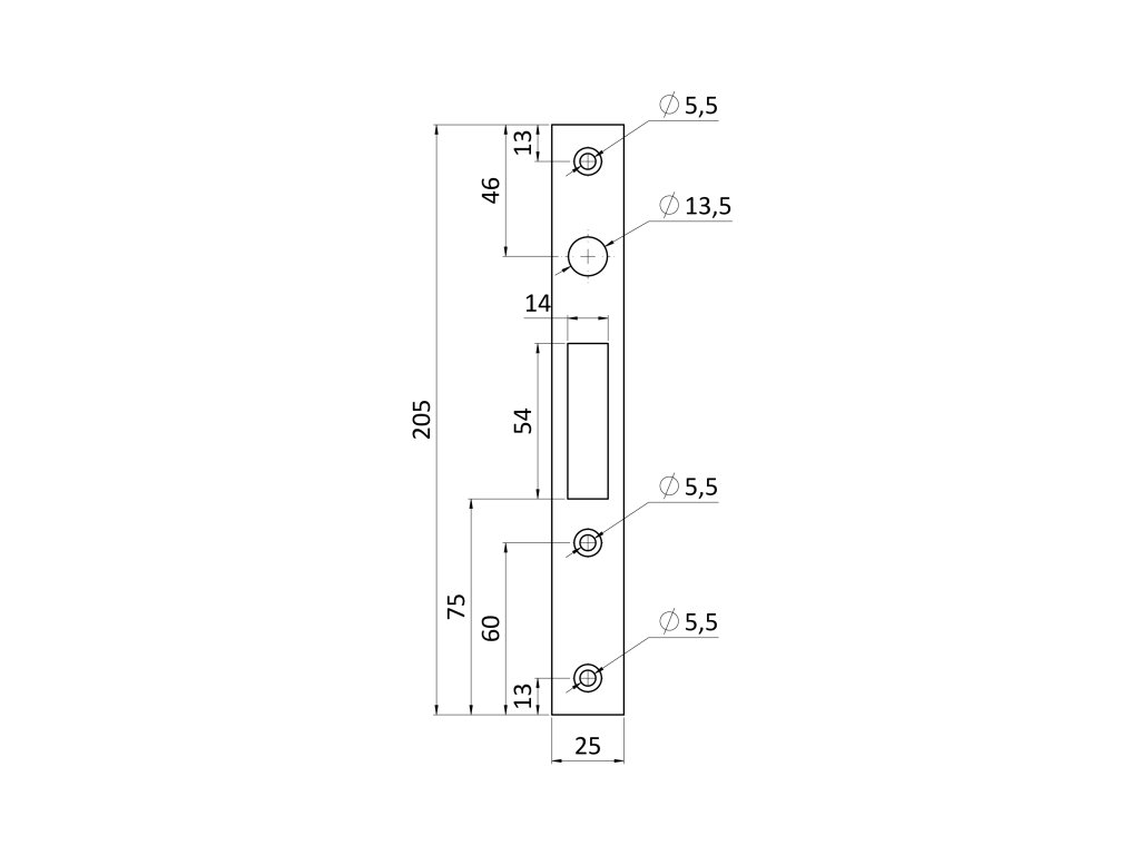 Lišta pro hákový zámek s čepem pro posuvnou bránu, šířka 25 mm, výška 205 mm, pro KZK4420PB a KZK6420PB