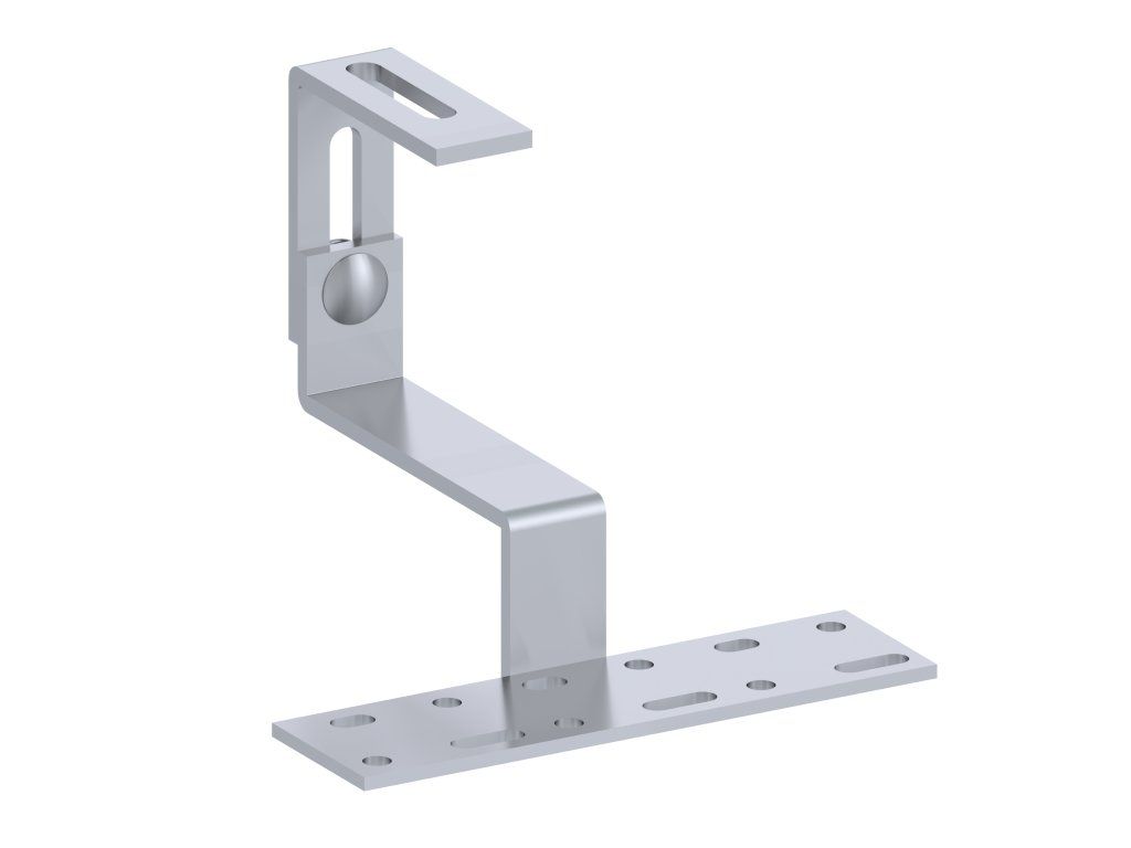 Střešní hák nastavitelný na vrchu, vhodný pro zakřivené krytiny (betonové nebo keramické). Nerez A2