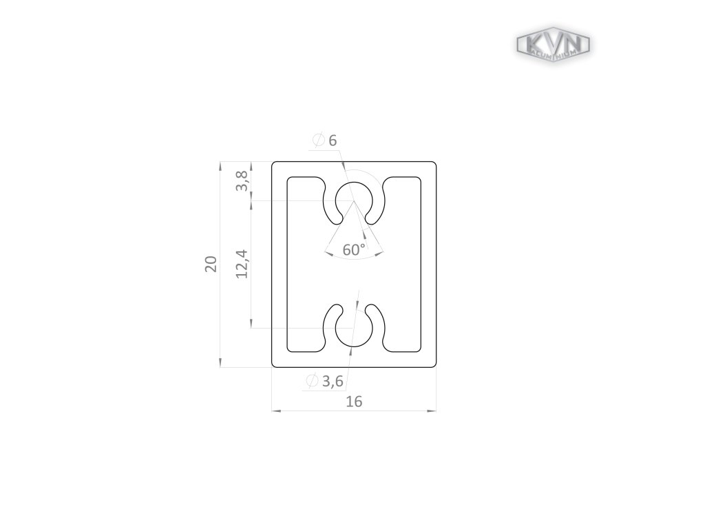 Eloxovaný profil pro výplň 20x16x6000 mm, materiál 6463, T6, hliník s eloxovanou vrstvou 15 mikronů, barva stříbrná, cena za KUS