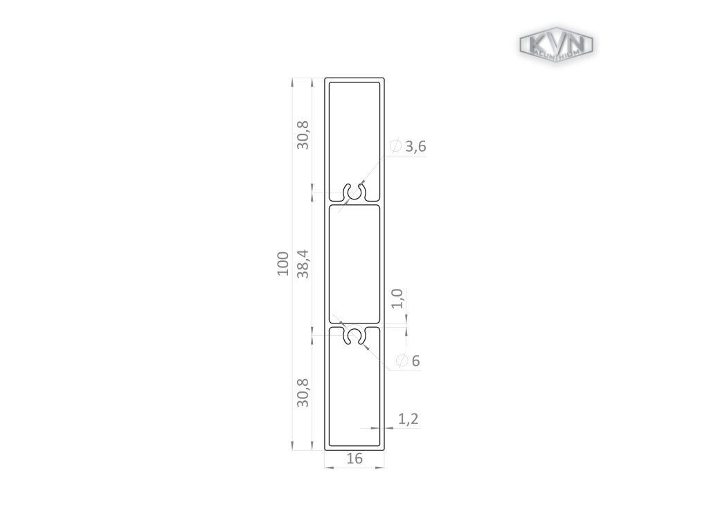 Profil 100x16mm, L-6000mm, práškový lak, struktura BUK