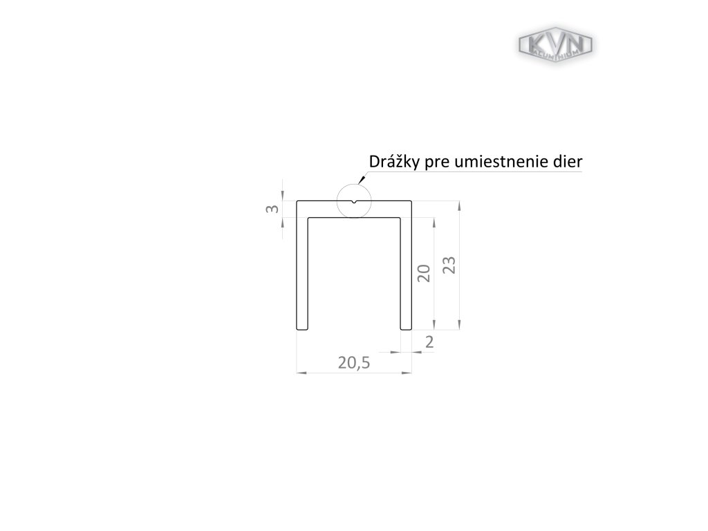 U profil 20,5x22x6000 mm, materiál EN AW-6060 T66, přírodní hliník bez povrchové úpravy, cena za KUS