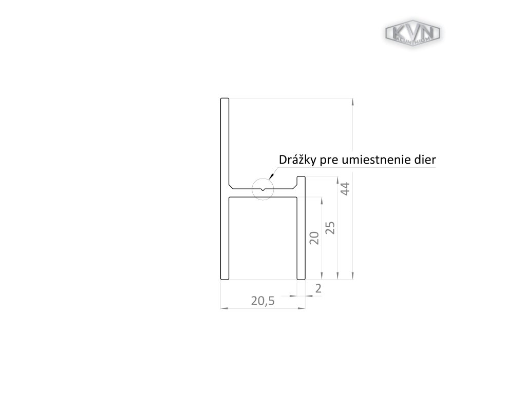UT profil 20,5x22x6000 mm, materiál EN AW-6060 T66, přírodní hliník bez povrchové úpravy, cena za KUS