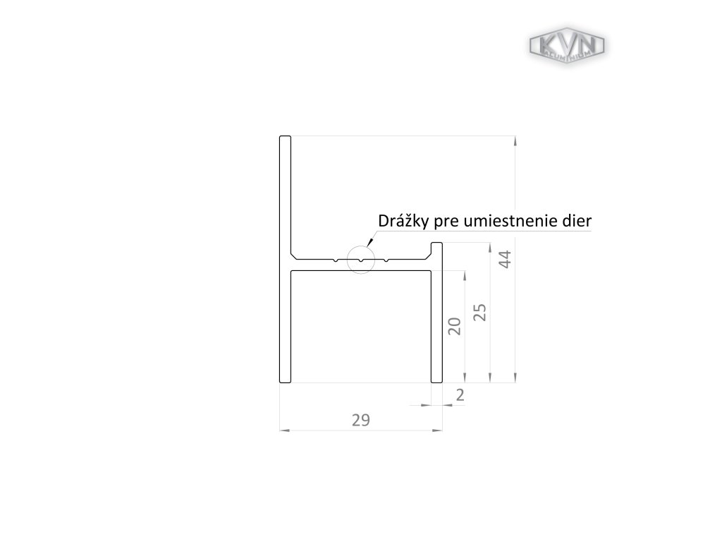 UT profil 29x44x6000 mm, materiál EN AW-6060 T66, přírodní hliník bez povrchové úpravy, cena za KUS