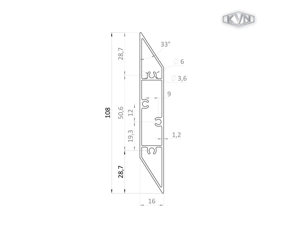 Výplňový profil 108x16mm, materiál EN AW-6060 T66, hliník s povrchovou úpravou, práškové lakování se strukturou, antracit RAL7016, cena za kus