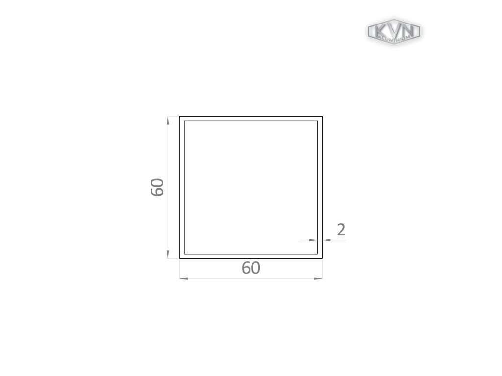 Hliníkový jekl 60x60x2 mm, délka 6000 mm, materiál EN AW-6060 T66, přírodní hliník bez povrchové úpravy, cena za kusDoplňkové parametry