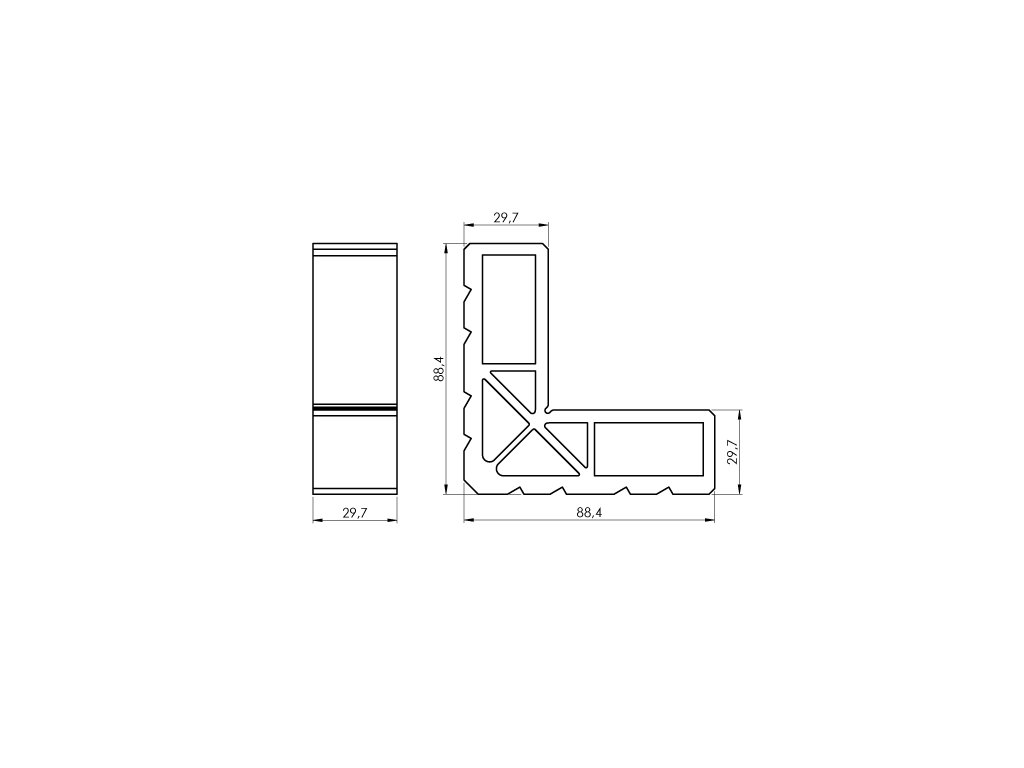 Přesně navržená rohová spojka s kódem AL-RS70, která je speciálně určena pro hliníkové profily AL-SP70-6 a AL-SP70-7016S-6. Tato hliníková spojka zabezpečuje pevné a stabilní propojení profilů v pravém úhlu a vytváří tak spolehlivé rohové spojení pro vaše hliníkové konstrukce.Rohová spojka AL-RS70 se vyznačuje kompaktním designem s rozměry 30x30 mm, který dokonale zapadá do struktury hliníkového profilu. Její speciální tvar s výstupky a drážkami zabezpečuje přesné umístění v rohovém spoji. Hliníkový materiál zaručuje vysokou odolnost vůči opotřebení a korozi, přičemž si zachovává stabilitu i při dlouhodobém používání.