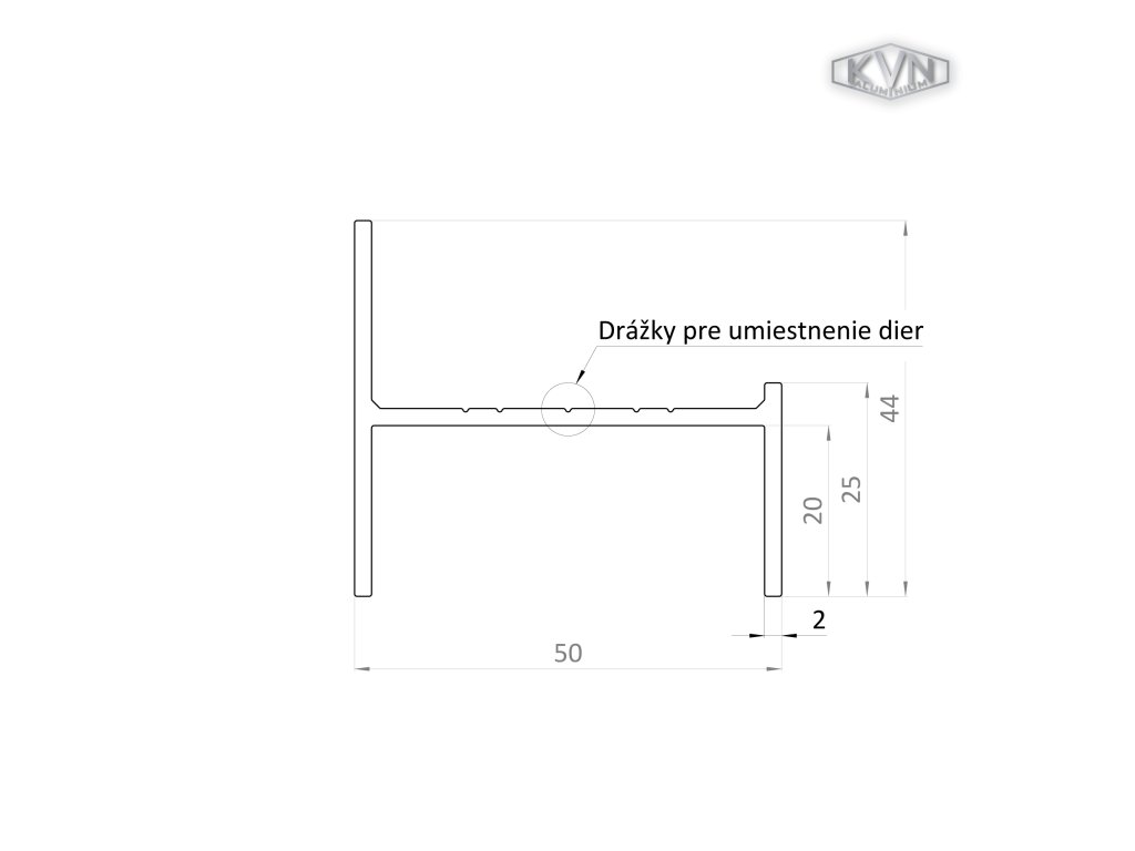 UT profil 50x44x6000mm, materiál EN AW-6060 T66, hliník s povrchovou úpravou antracit RAL7016, cena za KUS