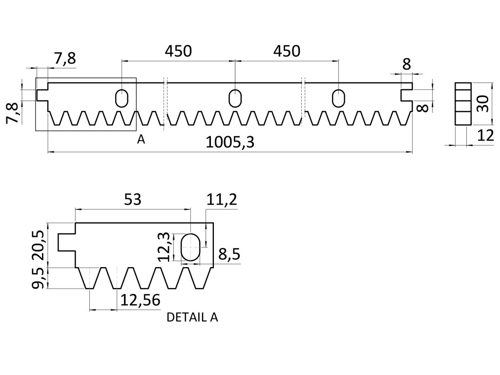Hřeben kovový 30 x 12 mm, L - 1000 mm, M4, maximálně do 2200 kg, 3x úchyt+šrouby, pozinkovaný se zámkem