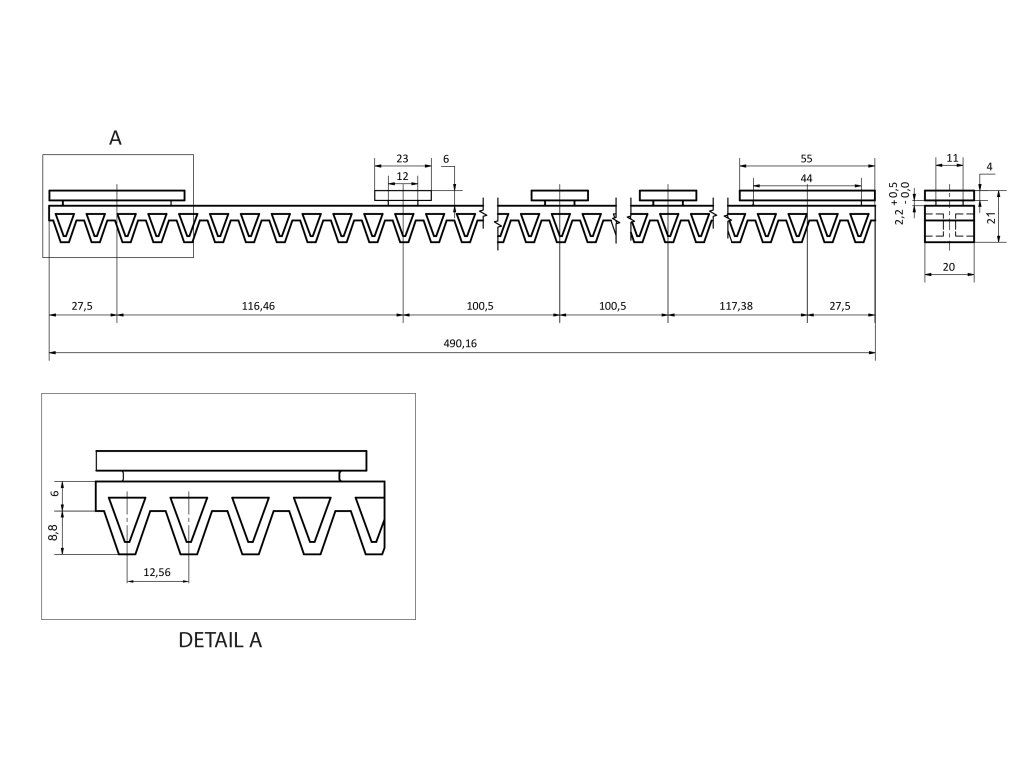Nylonový hřeben CREM-05AL je vystužen sklenenými vláknami. Je určen pro použití na hliníkový samonosný profil AL-C95x100, na pripojení pohonu s modulem M4.Délka – 500mm