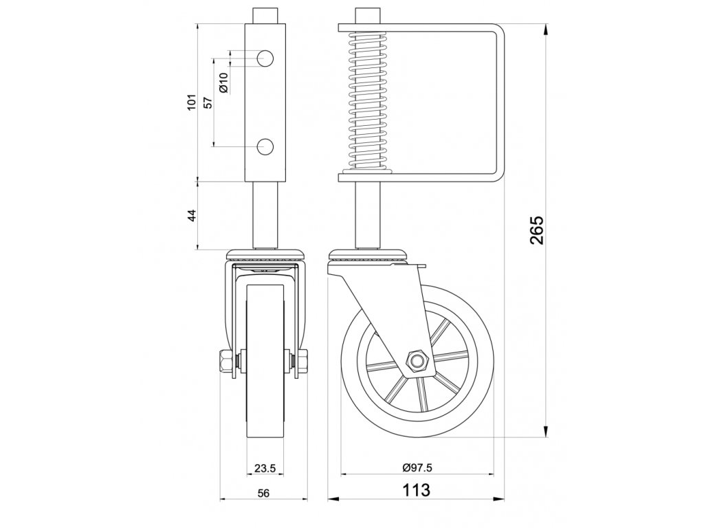 Vodící kolečko pro křídlovou bránu, s pružinou, nostnost 70KG