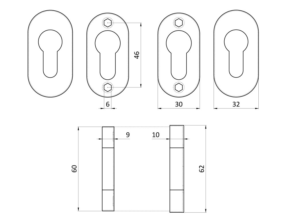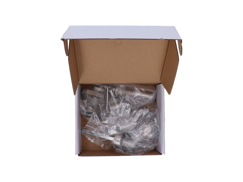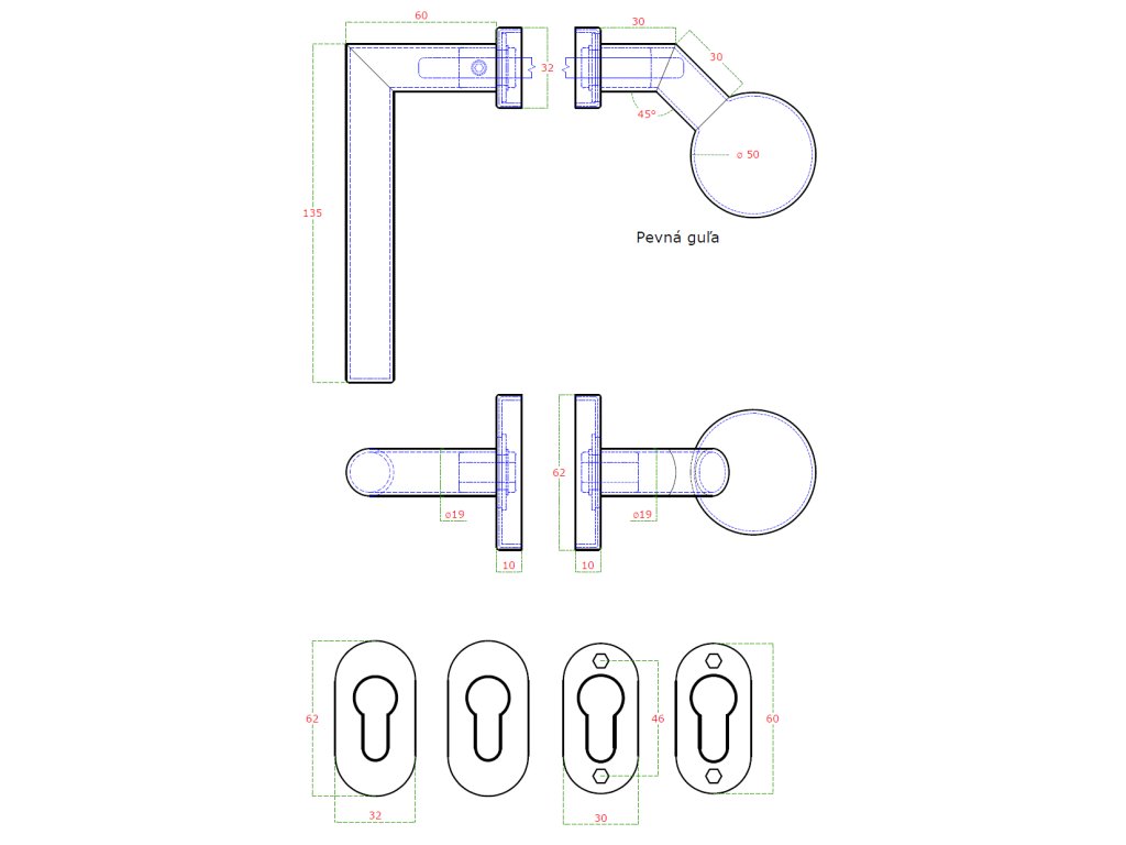 Klika (pravá) + koule (pevná) ohnutá, včetně spodní rozety, balení: 1 ks klika (pravá), 1 ks koule, 2 ks spodní oválná rozeta, broušená nerezová ocel AISI304Doplňkové parametry