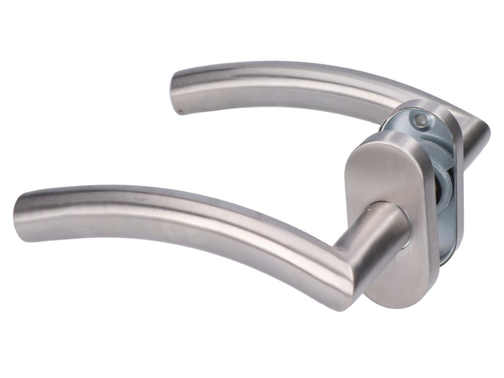 Klika nerezová (pár) bez dolní rozety, balení: 2ks klika + příslušenství k montáži, broušená nerez K320 /AISI304