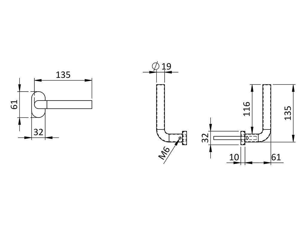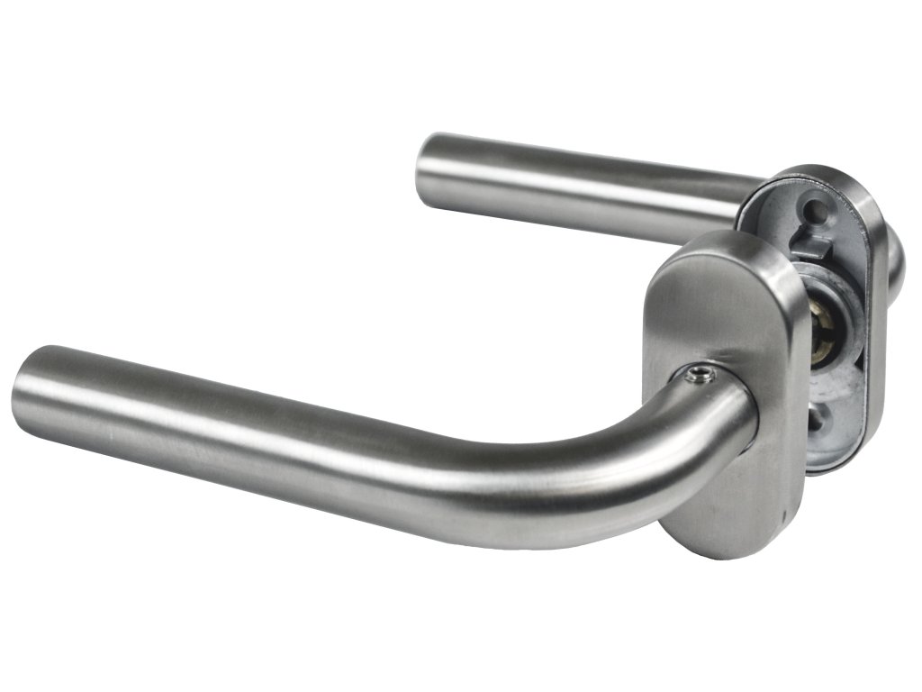 Klika nerezová (pár) bez dolní rozety, balení: 2 ks klika + příslušenství k montáži, broušená nerez K320 / AISI304Doplňkové parametry