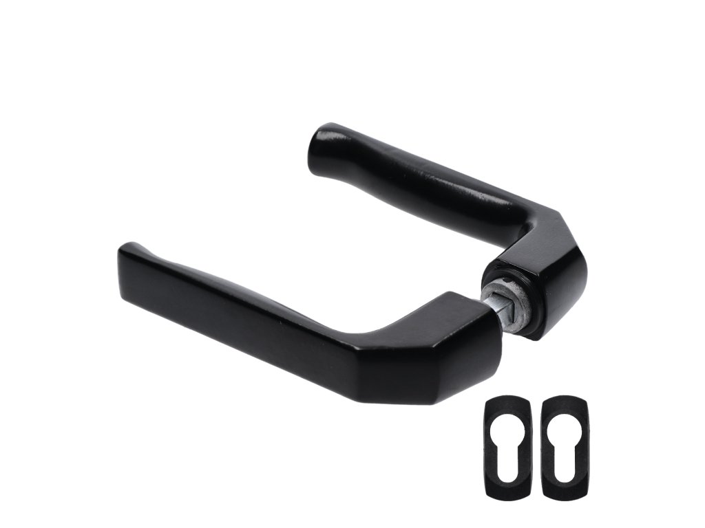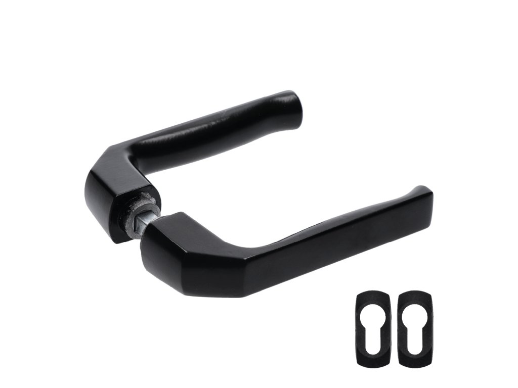 Klika AL, 125 x 41 mm, ø 19 mm, štítek 23 x 50 mm, černá prášková barva vypalovaná, s otvorem pro stavební vložku, pár