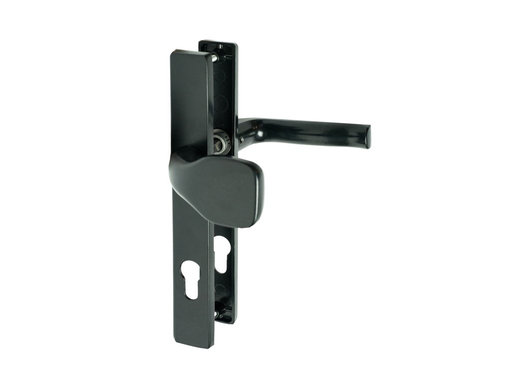 Klika AL, s pevnou koulí, rozměr štítku 239 x 31mm, rozteč A-90mm, B-67mm, černá prášková barva RAL 9005 vypalovaná, s otvorem pro stavební vložku, možnost montáže vlevo nebo vpravo, párVlastnosti: