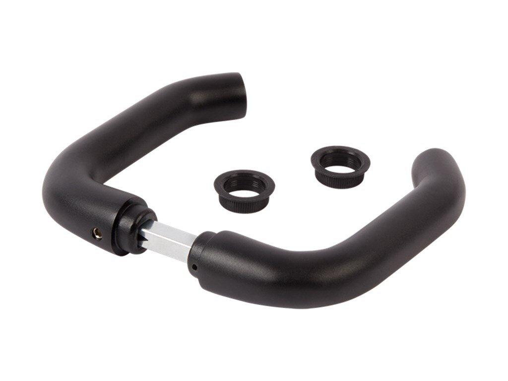 1 PÁR LOCINOX® 3006B - hliníková klika s plastovými kroužky, čtyřhranem a jistícím šroubem