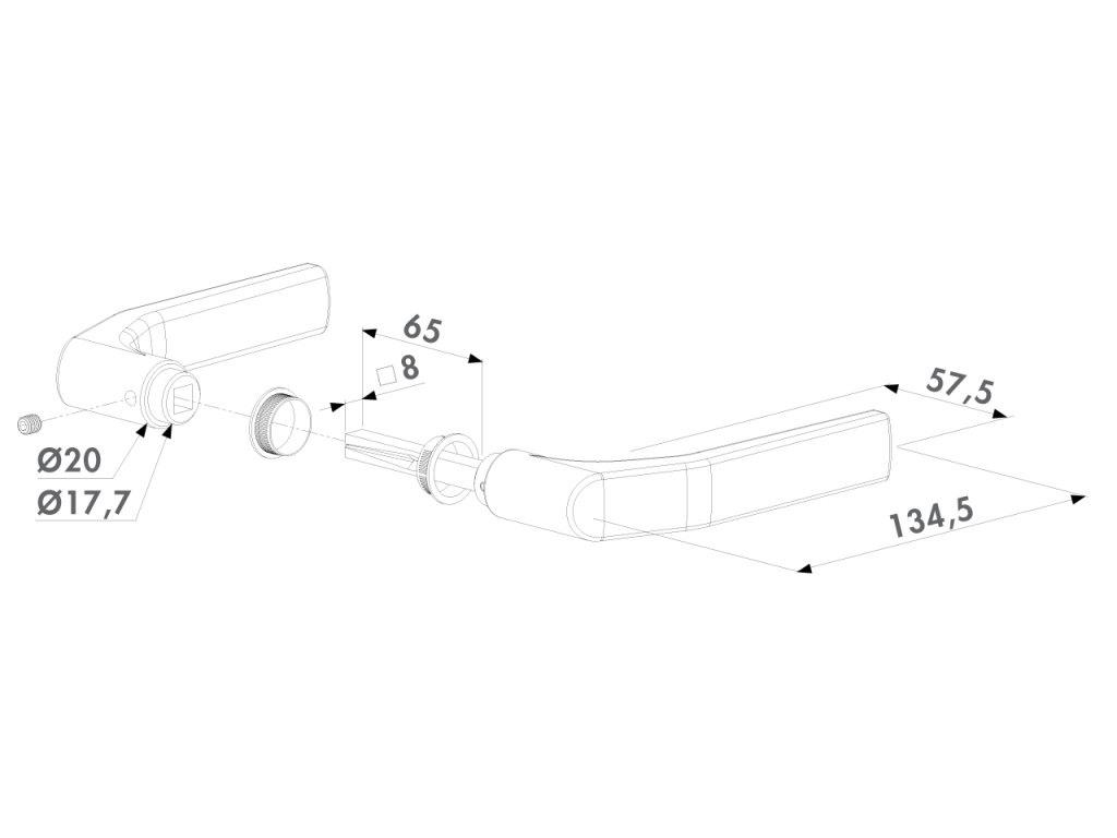 LOCINOX® 3006J - hliníková klika, materiál: eloxovaný hliník (stříbrný), hřídel 8x8x65 mm