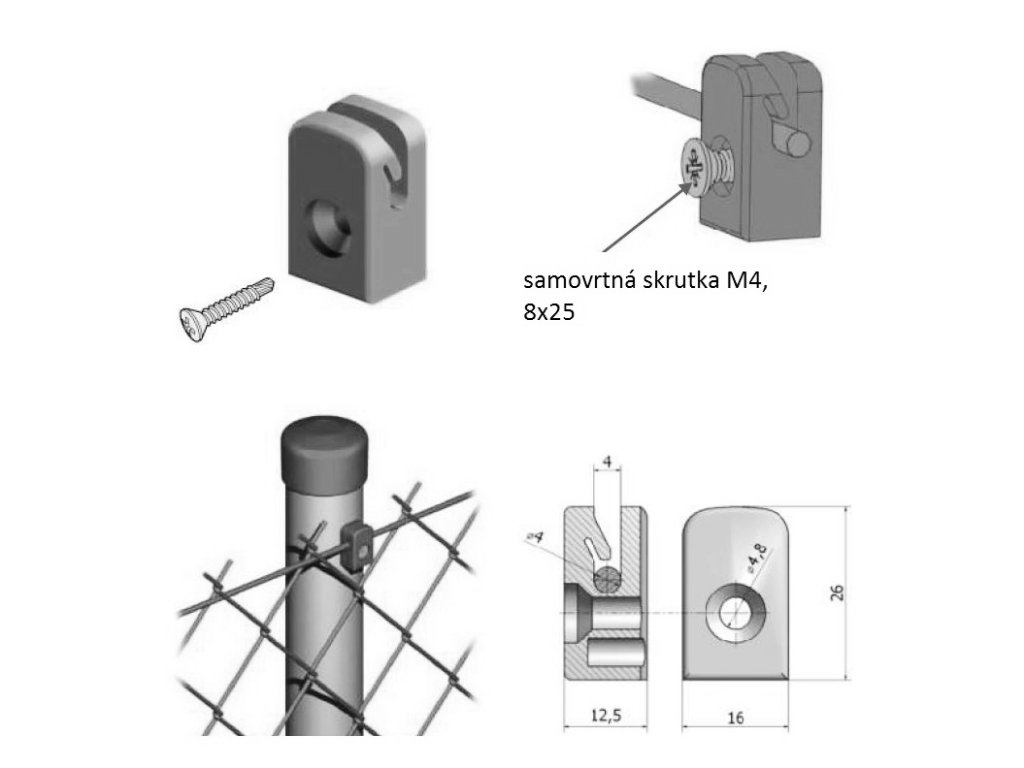 Úchytka napínacího drátu se samořezným šroubem M4, 8 x 25 mm, černáDoplňkové parametry