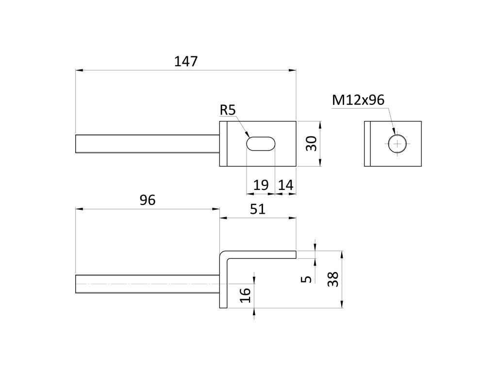 Toto kotvení má rozměry M12 o délce 185 mm a šířce 30 mm, o tloušťce 5 mm.