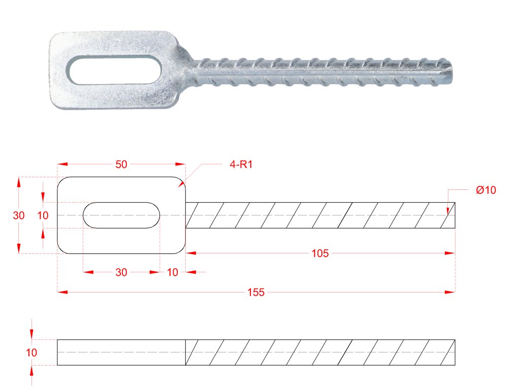 Kotvení do betonu na plotové dílce 130*30mm, na vrták ø 10mm, Zn