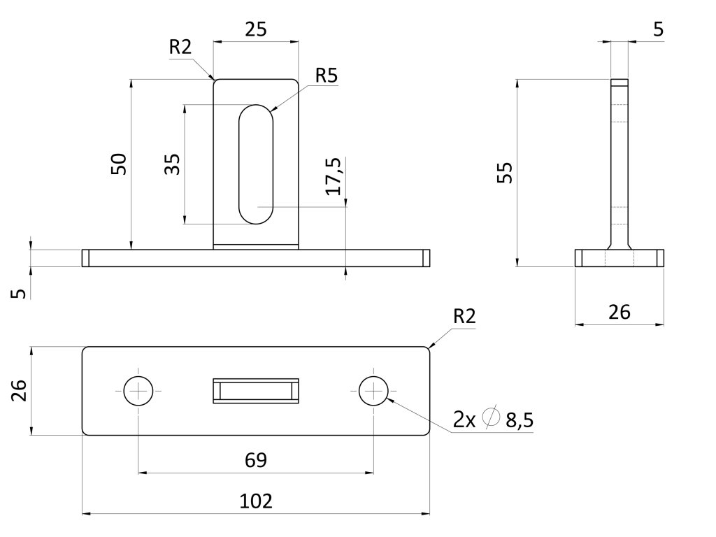 Úchyt ozdobný 100 x 25/ 5 mmDoplňkové parametry