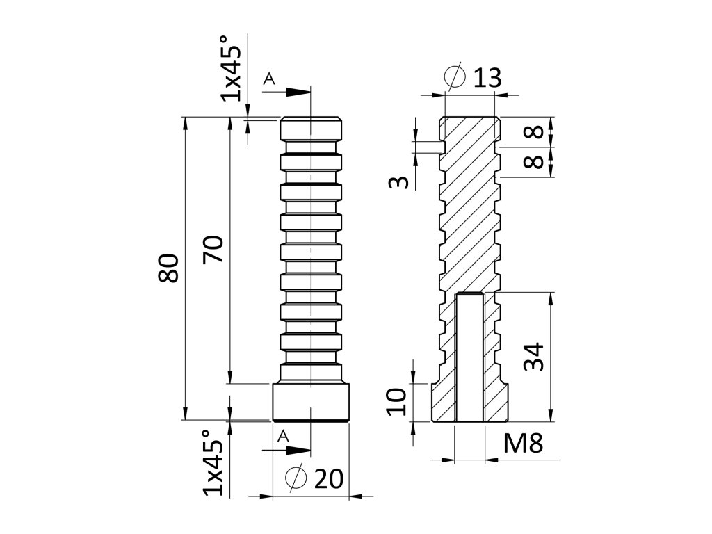 Hmoždinka s vnitřním závitem pro kotvení do zdiva, závit M8