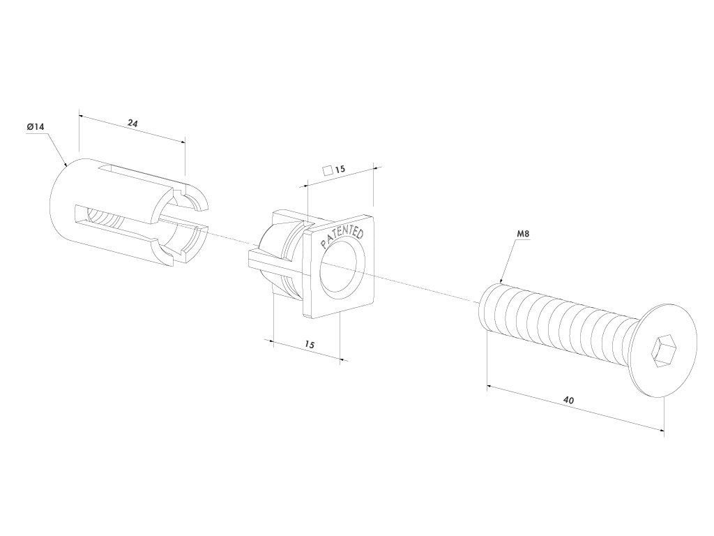 Quick-Fix patentovaný montážní systém z nerezavějící oceli. Nová generace Quick-Fix si po namontování udrží svoji polohu v profilu, i když je Quick-Fix odšroubován. Může být díky svému designu mnohokrát znovu použita. Tímto způsobem zaručuje jednoduchou, rychlou a pevnou montáž, která odolá tažné síle minimálně 1000 kg.Pro případ ztráty nebo poškození expandéru, v nabídce je náhradní expandér QF-EXP v délkách 17mm (pro profil 30 mm) a 24 mm (pro profil 40 mm).