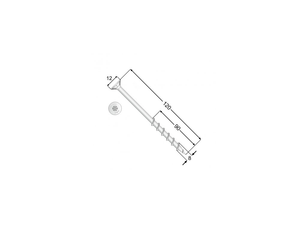 tvrzený vrut do pórobetonu, 8x120, destičkové / lamelární pozinkování, TX30, zápustná hlava