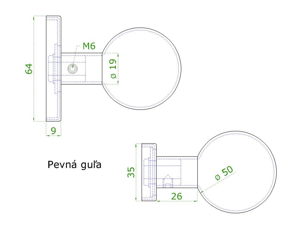 koule ke kličce s oválnou rozetou, pevná, bal.: 1 ks, broušená nerez K320 /AISI304Doplňkové parametry