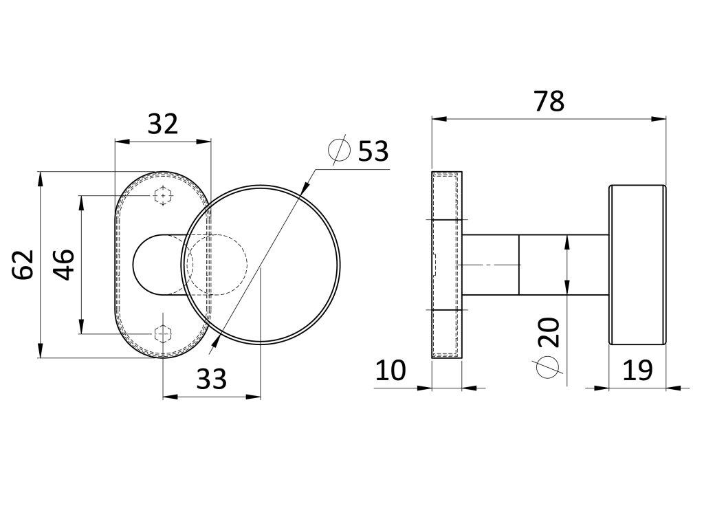 koule plochá, vyhnutá ke kličce s oválnou rozetou, pevná, bal.: 1 ks, broušená nerez K320 /AISI304
