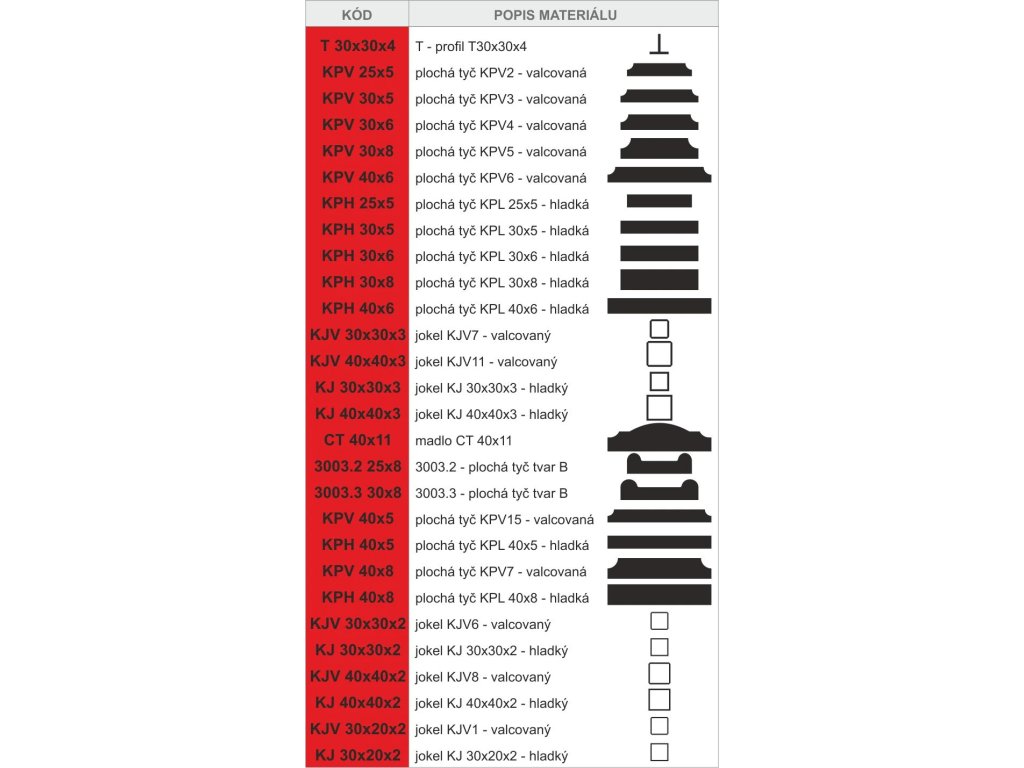 Ploché tyče a nerovnoměrné jakle jsou ohýbané na stojato. V případě ohnutí naležato, je třeba kontaktovat obchodní oddělení, nebo napsat poznámku v objednávce k vybranému oblouku.Doplňkové parametry