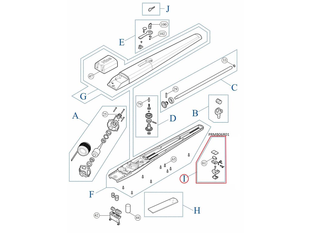 PRMB06R01 set mechanického dorazu s mikrospínačem, pružinkou a káblíkem pro TOONA4, TOONA5, MOBY