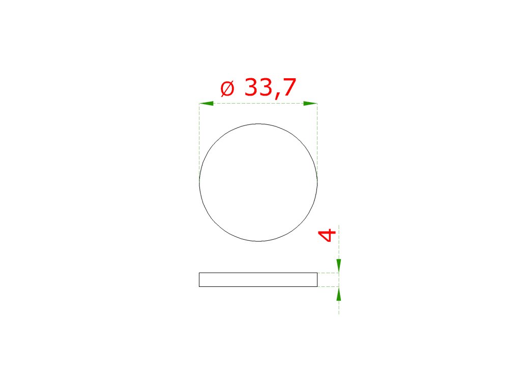 Ukončení-krytka (ø33,7 mm / H: 4 mm), broušená nerez K320 / AISI304Doplňkové parametry
