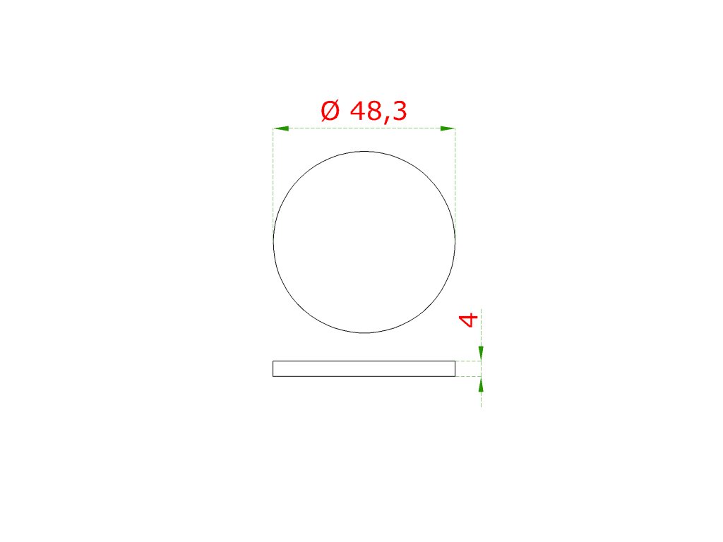 Ukončení-krytka (ø 48,3 mm / H: 4 mm), broušená nerez K320 / AISI304Doplňkové parametry