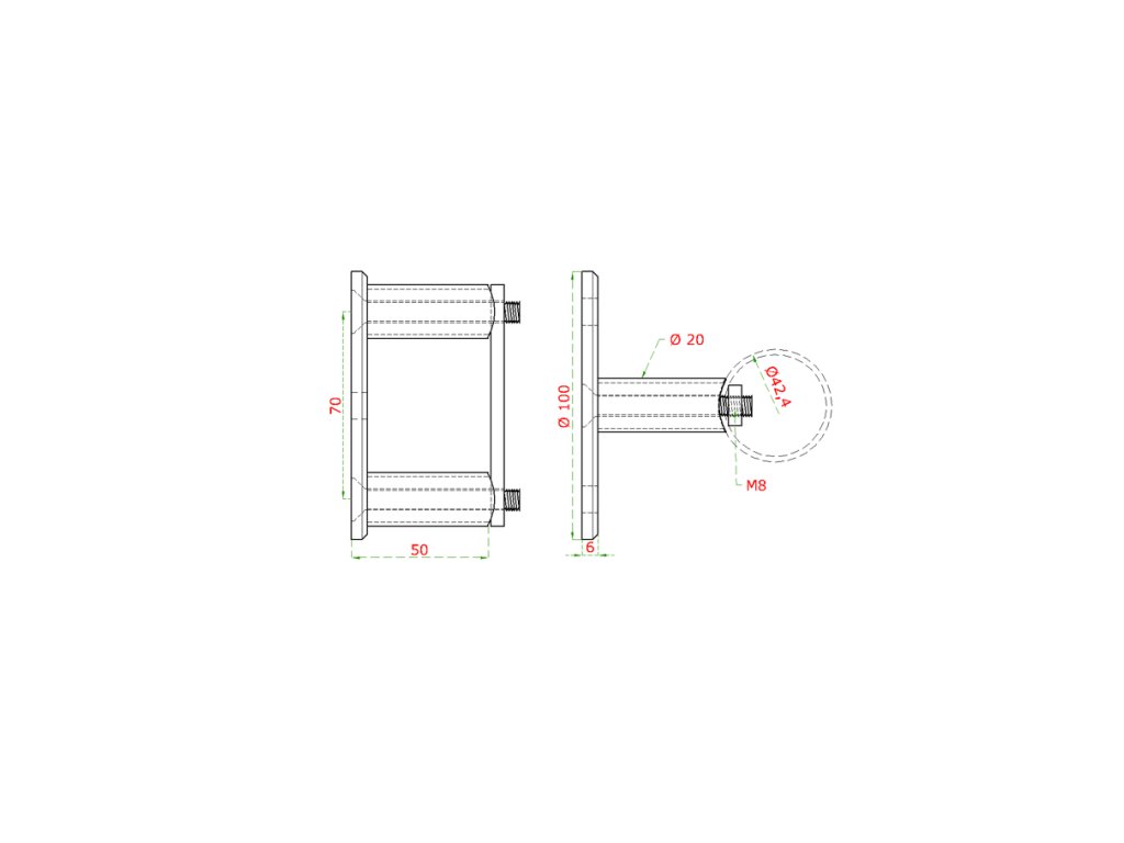 Úchyt na boční kotvení sloupu ø 42,4 mm (ø 100/8,8 mm), broušená nerez K320 / AISI316