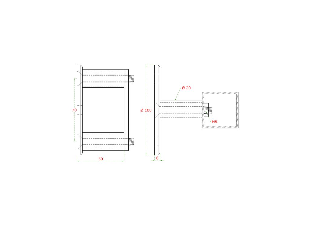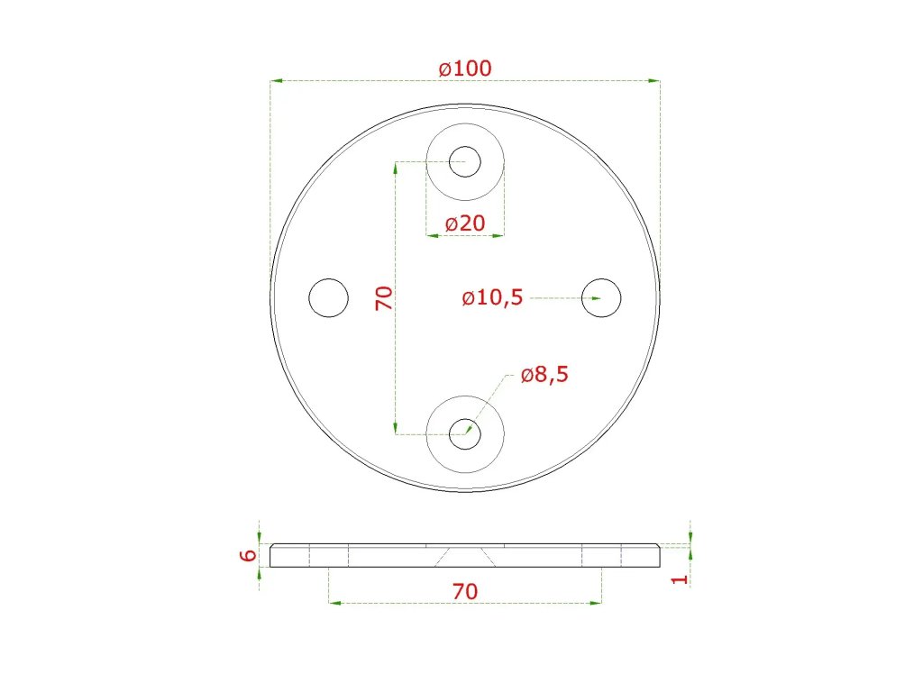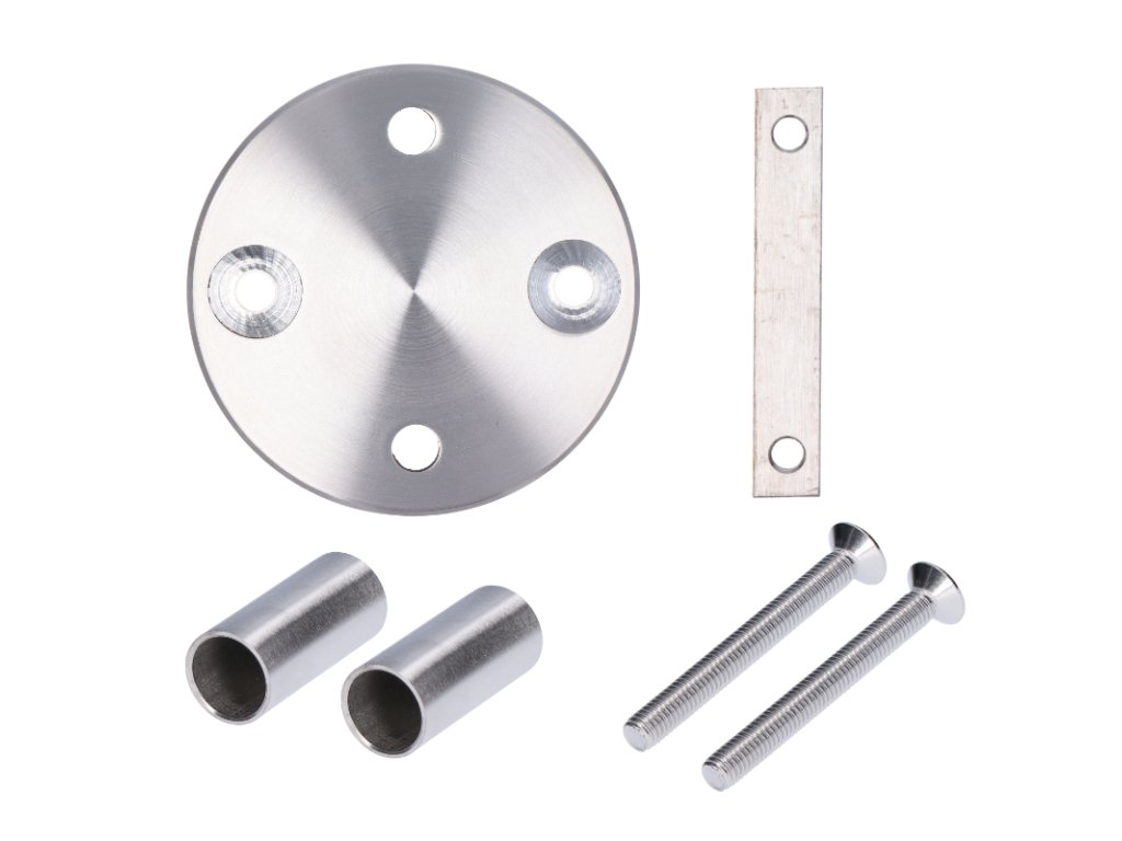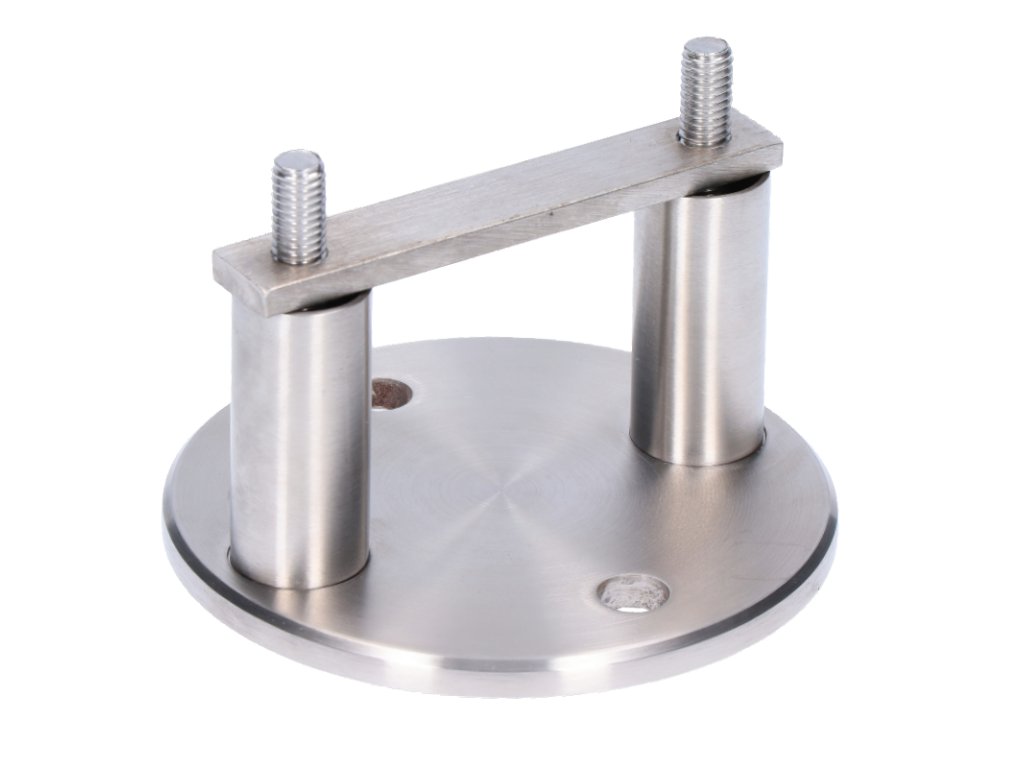 Úchyt na boční kotvení sloupu na jekl, (kotevní deska ø 100 /6mm), broušená nerez K320 /AISI304