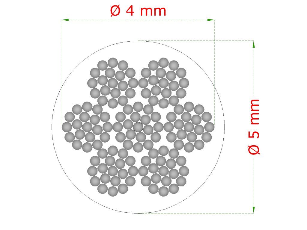oceľové lanko ø4mm (7x19 dr.) /galvanicky pozinkované s PVC obalom - celková hrúbka ø5mm