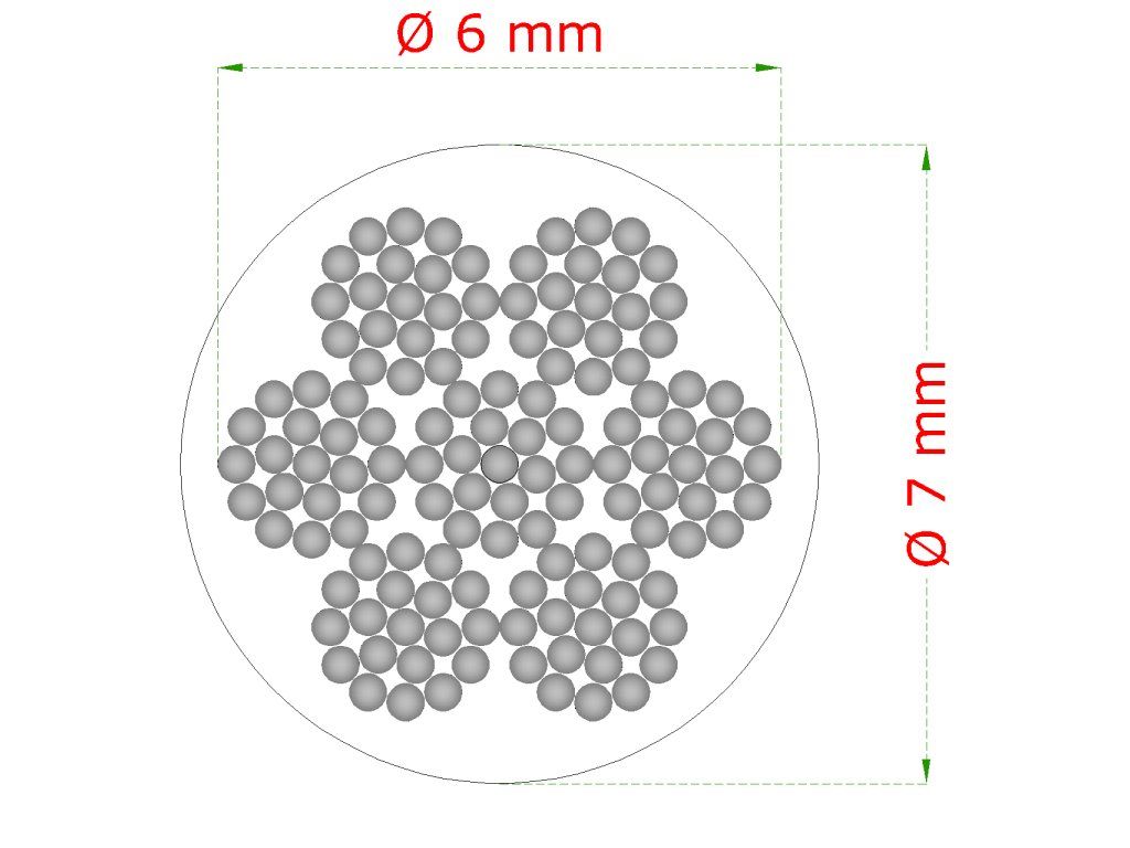 oceľové lanko ø6mm (7x19 dr.) /galvanicky pozinkované s PVC obalom - celková hrúbka ø7mm