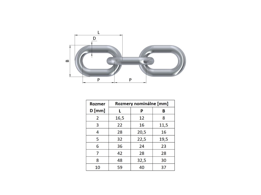 Řetěz ø2 mm, oko 18 x 10 mm, pozinkovanýDoplňkové parametry