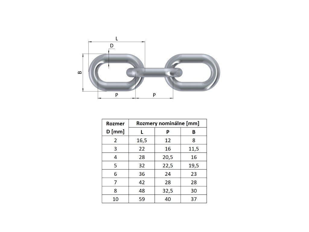 Řetěz ø4 mm, oko 27 x 16 mm, pozinkovanýDoplňkové parametry