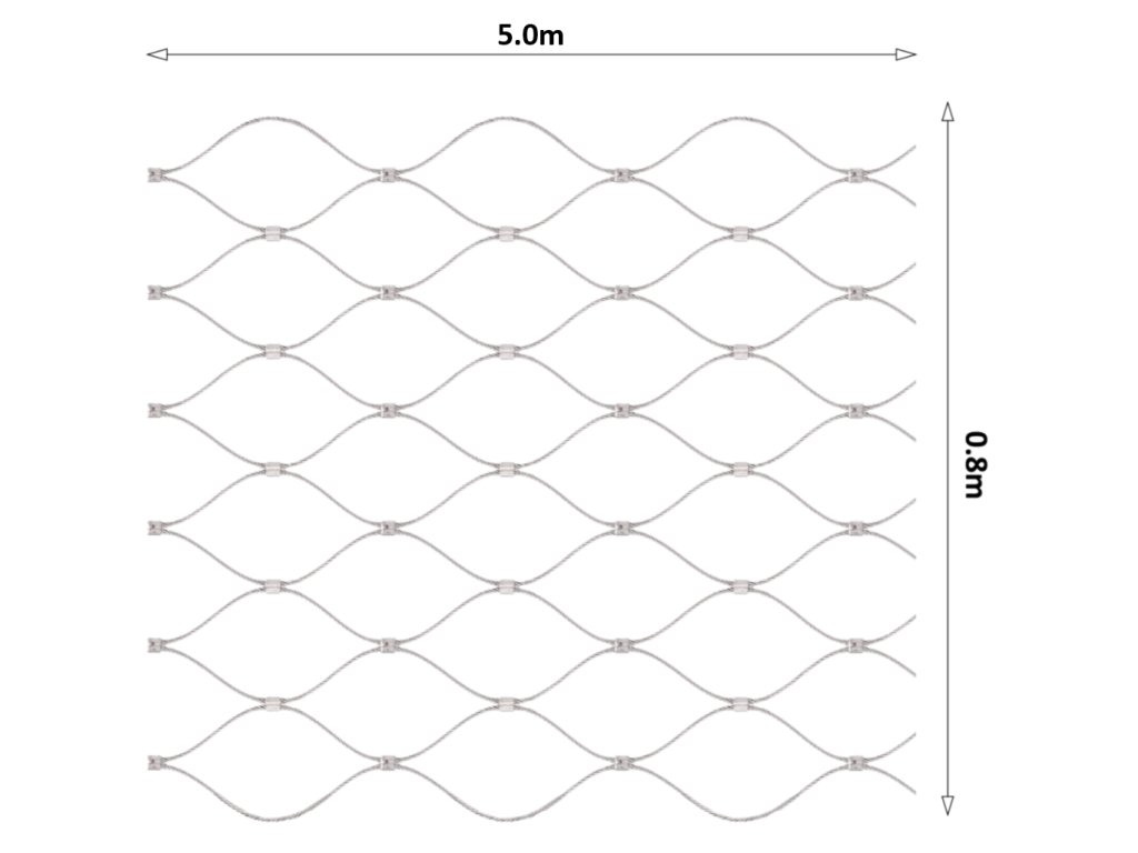Nerezová lanková síť, 0.8mx5m (šxd), oko 60x104mm, hrúbka lanka 2mm, AISI316, síť není ukončena očky pro provlečení lanka