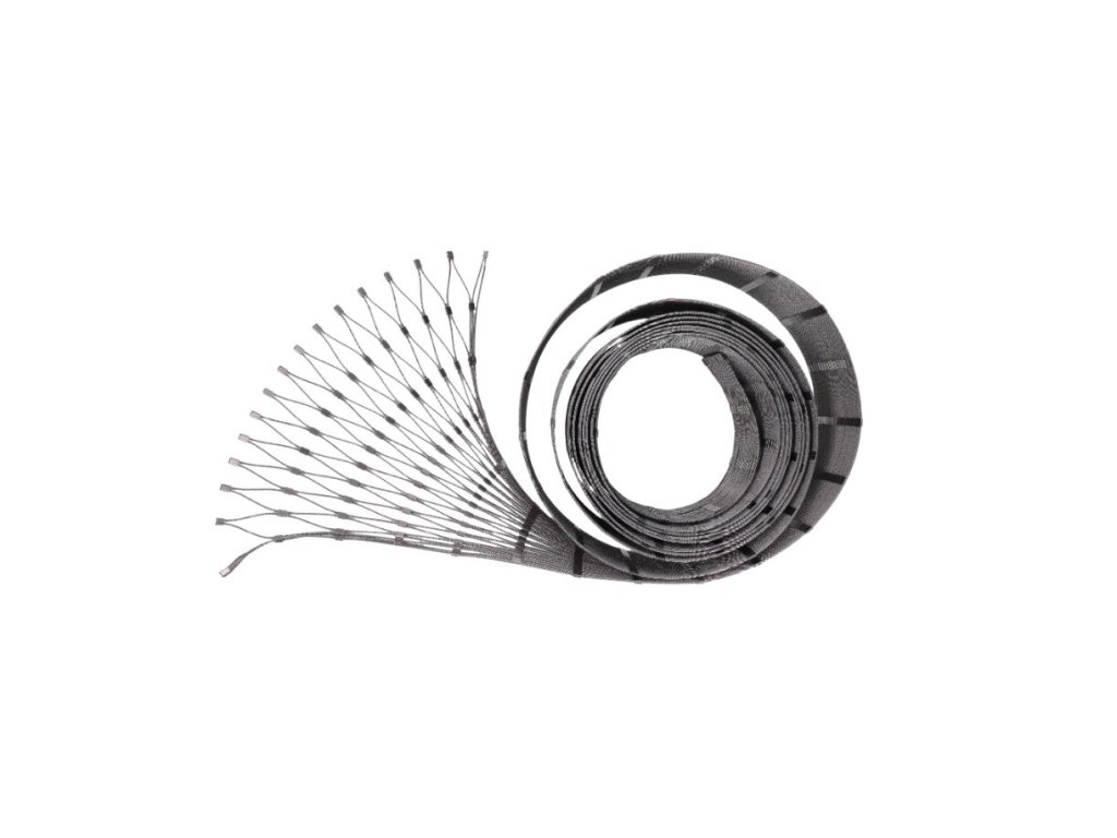 3. Když máme síť uchycení pomocí vázacích pásek pokračujeme propletením nerezového upínacího lanka: