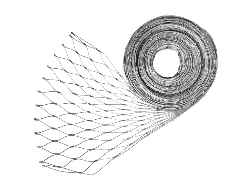 Nerezová lanková sieť, 1,0m x 25m (šxd), oko 50x50 mm, hrúbka lanka 2mm, AISI316 (V nerozloženom stave má sieť 29,1m)