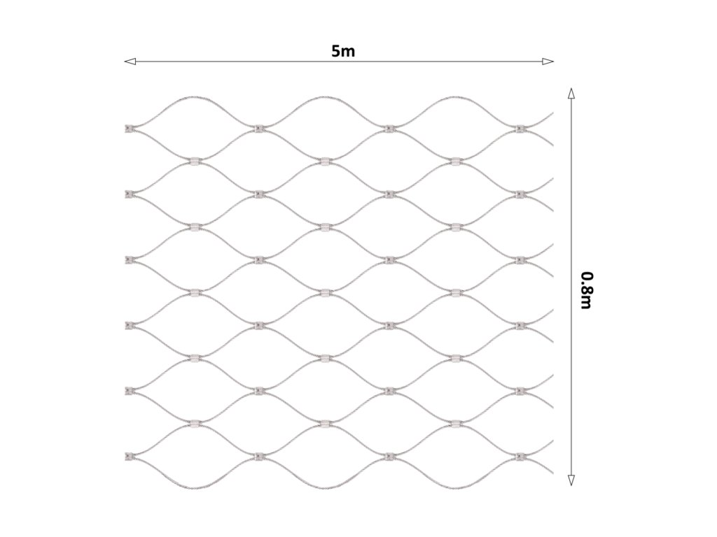 Nerezová lanková síť, 0,8m x 5m (šxd), oko 50x50 mm, tloušťka lanka 2mm, AISI316, síť neni ukončena okami pro provlečení lanka