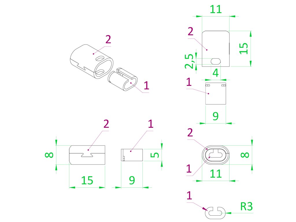 Nerezové lisovací pouzdro pro dvě 2.0mm lanka - uzavřeno s okem (skládá se ze dvou částí). K320/AISI 316.Doplňkové parametry
